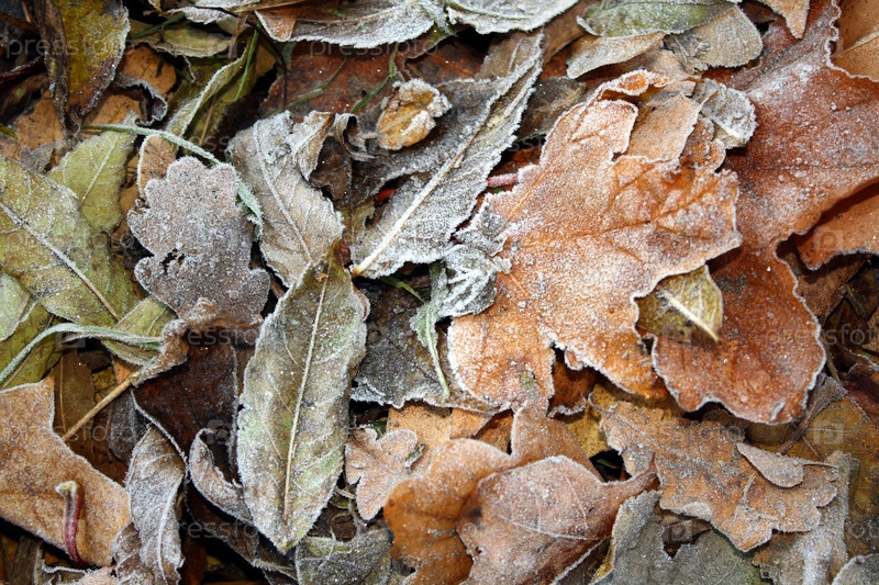 Покрытые инеем опавшие листья