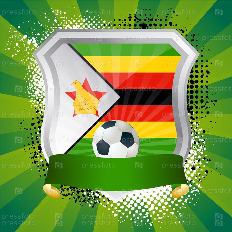 Иллюстрация футбольного мяча и флага Зимбабве на зеленом фоне