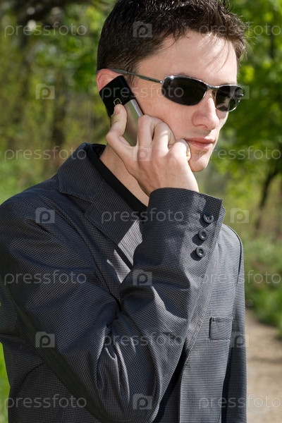 Молодой бизнесмен говорит по телефону