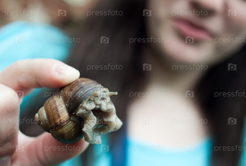 Большая улитка в женской руке