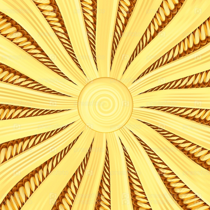 Золотое сияющее солнце с лучами. 3D изображение высокого разрешения
