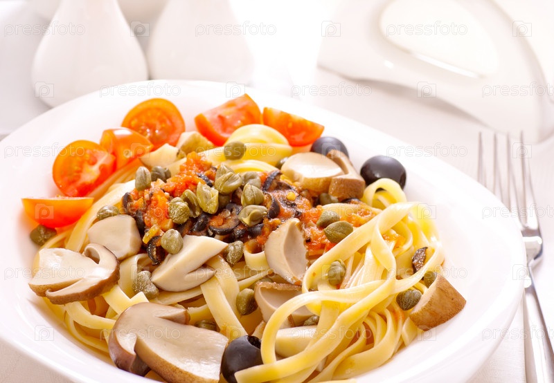 Макароны с грибами и каперсами