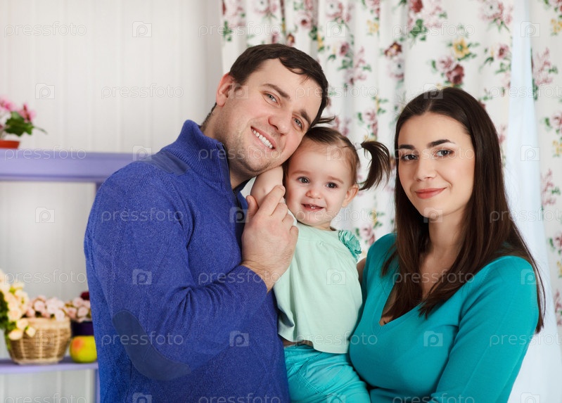 Счастливая семья с годовалой девочкой