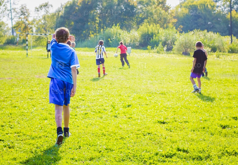 Дети играют в футбол на поле