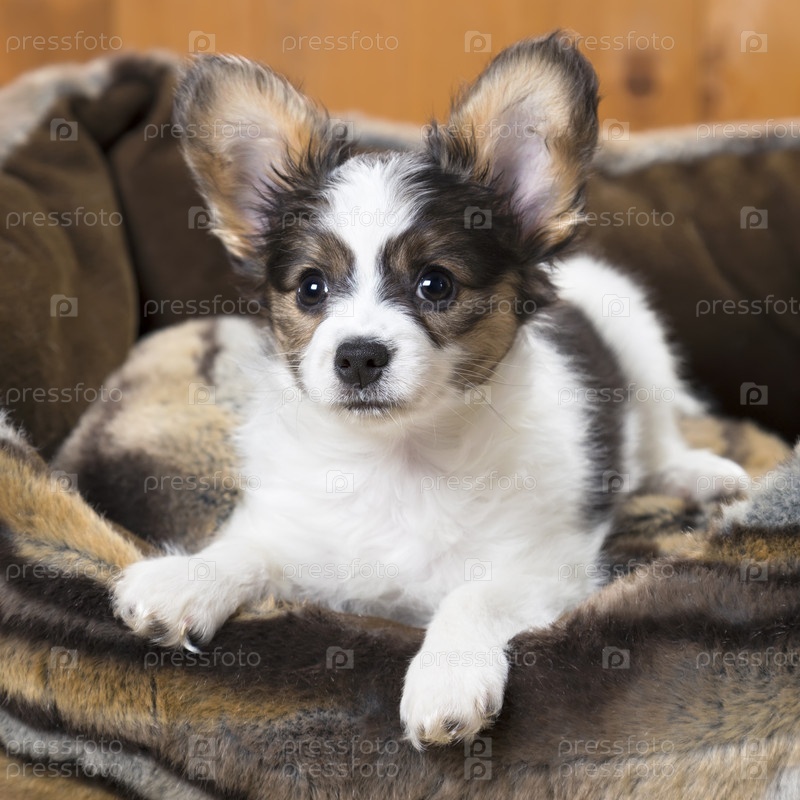 Щенок папильона на подстилке