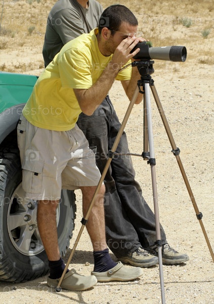 Орнитолог в пустыне Седе Бокер, Израиль