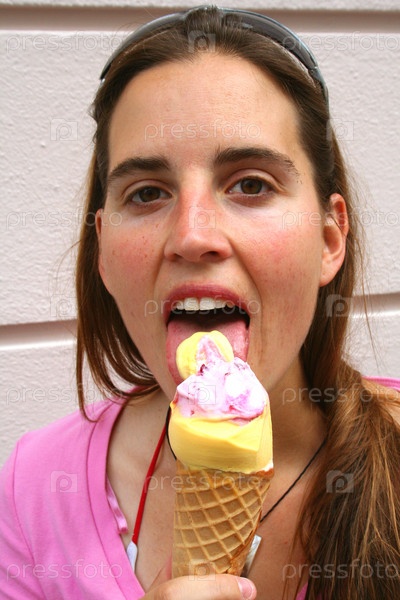 Женщина ест мороженое