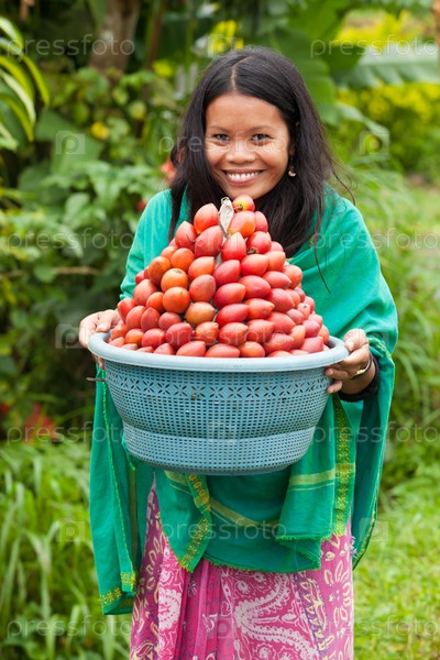 Женщина с красными фруктами