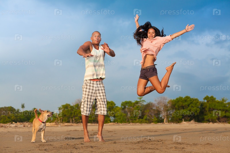 Молодая пара в прыжке