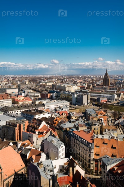 Рига, Латвия, центр города и университет, вид из собора святого Петра