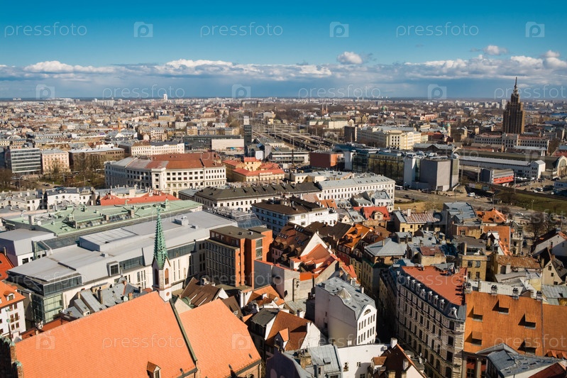 Рига, Латвия, центр города и университет, вид из собора святого Петра