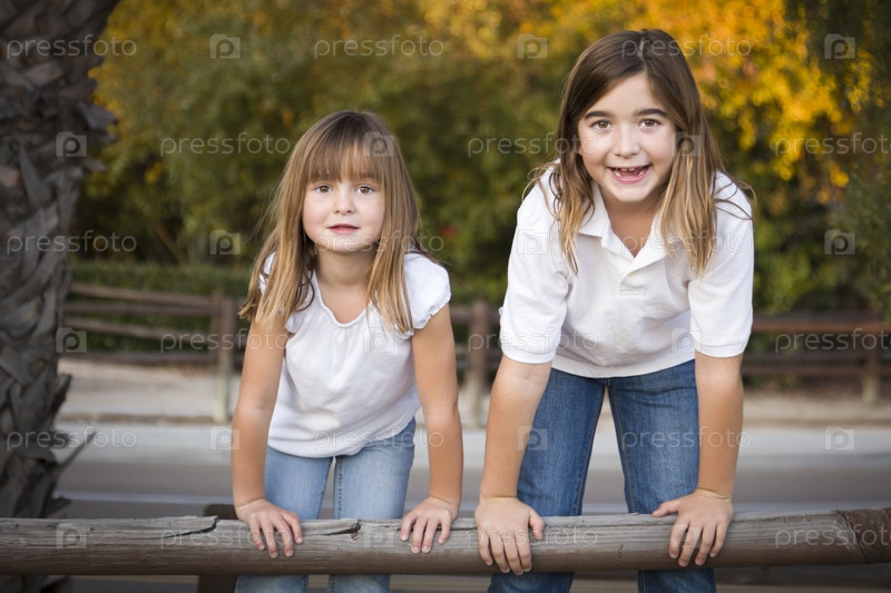 Хорошенькие молодые сестры на улице