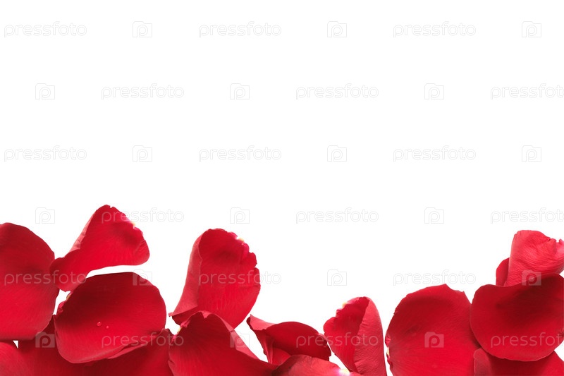 Красные лепестки розы на белом фоне