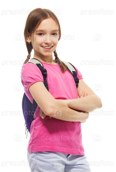 Счастливая школьница с рюкзаком