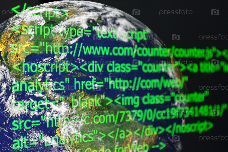 Веб-код на фоне земного шара