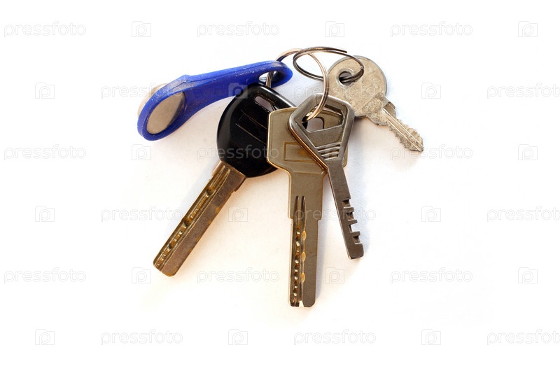 Связка ключей на белом фоне