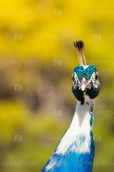 Заинтересованный павлин смотрит в камеру