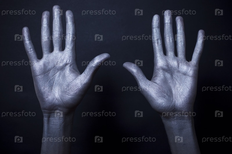 Мужские руки, покрытые серебряной краской