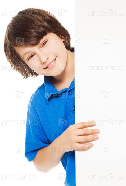 Счастливый мальчик с пустым билбордом