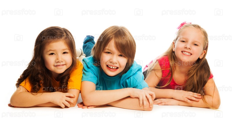 Трое детей, лежащих в ряд