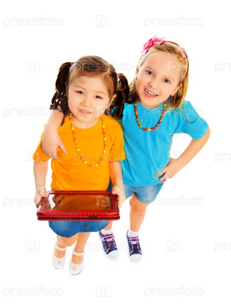 Две маленькие подружки с планшетным компьютером