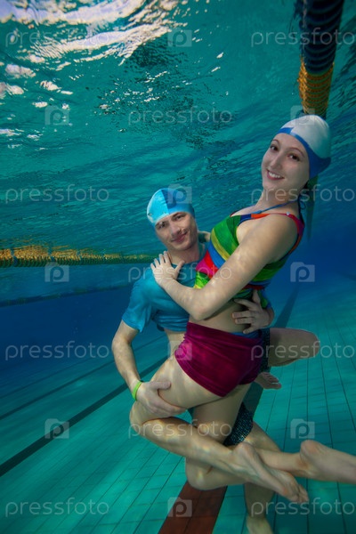 Пара веселится под водой в бассейне