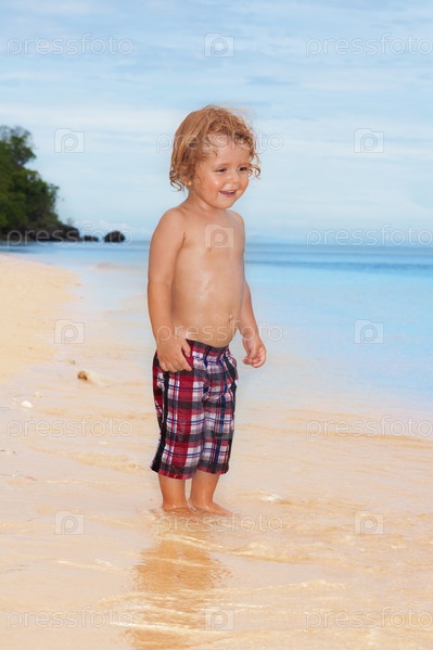 Счастливый ребенок на пляже