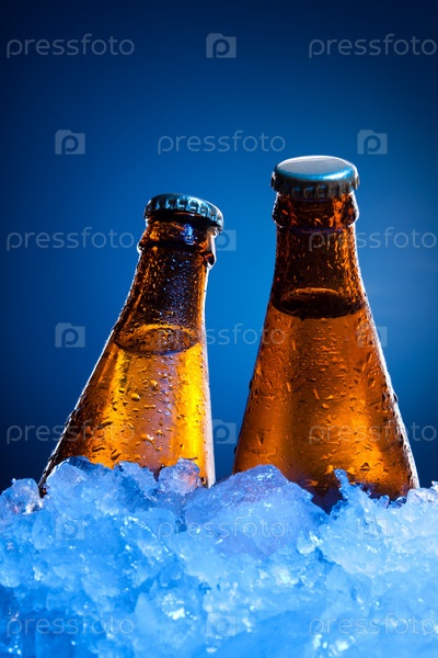 Пара бутылок пива во льду