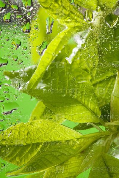 Ветка с молодыми листьями после дождя