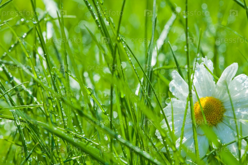 Ромашка крупным планом в траве