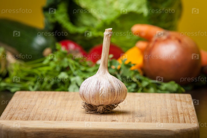 Головка чеснока на разделочной доске