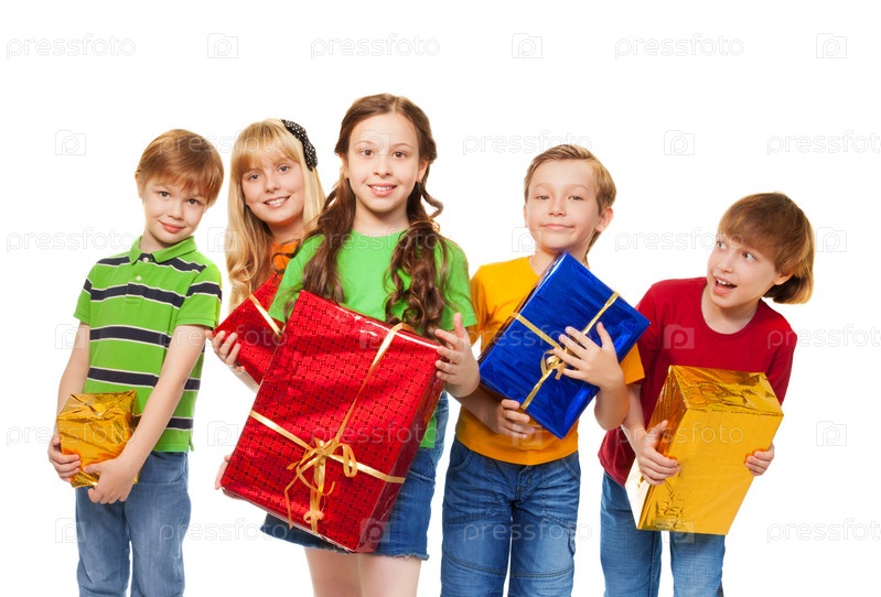 Симпатичные дети с завернутыми подарками