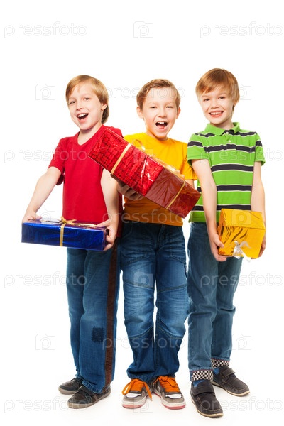 Смеющиеся мальчики с подарками