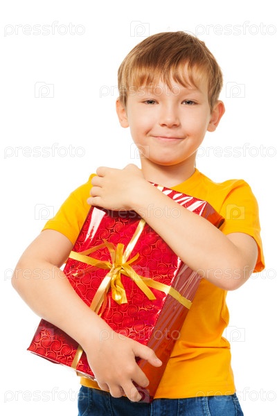 Мальчик держит свой рождественский подарок
