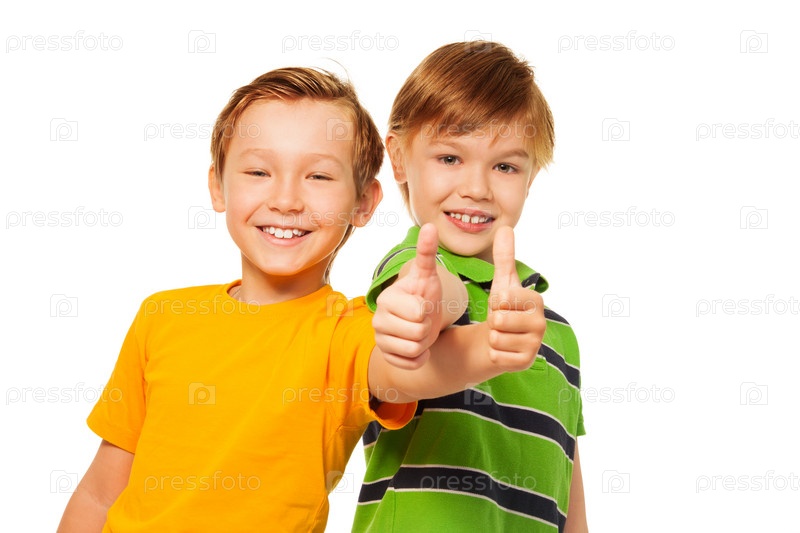 Милые мальчики с поднятыми большими пальцами