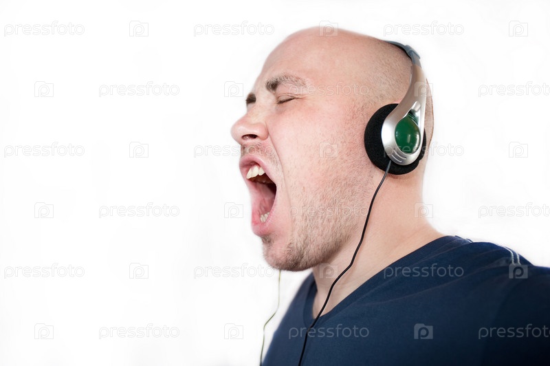 Молодой эмоциональный человек слушает музыку