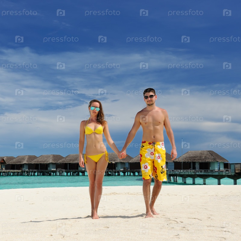 Пара на пляже на Мальдивах