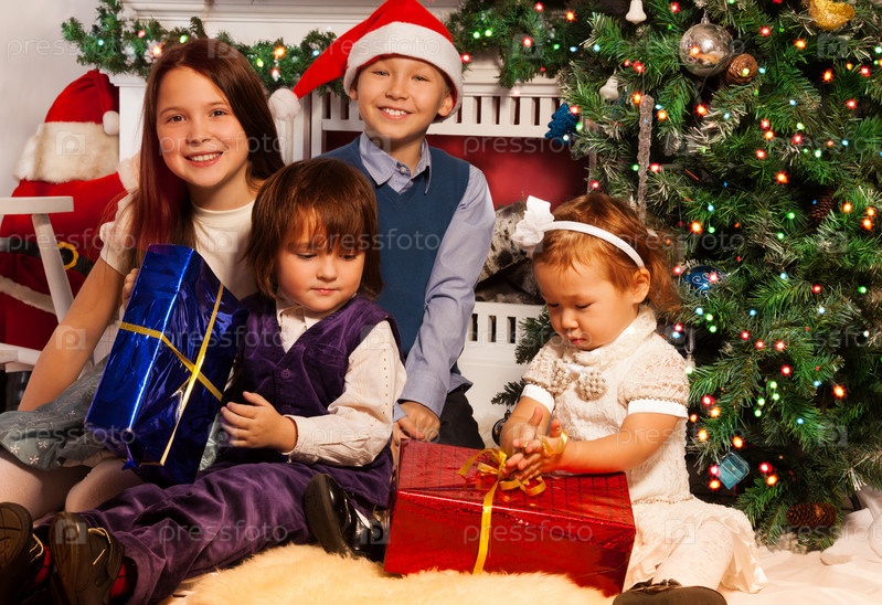Дети, сидя у елки