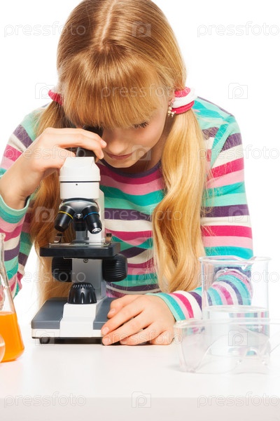 Девочка в классе на уроке химии