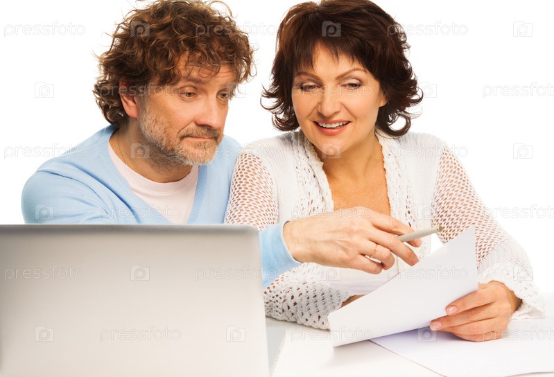 Взрослая пара обсуждает некоторые бумаги