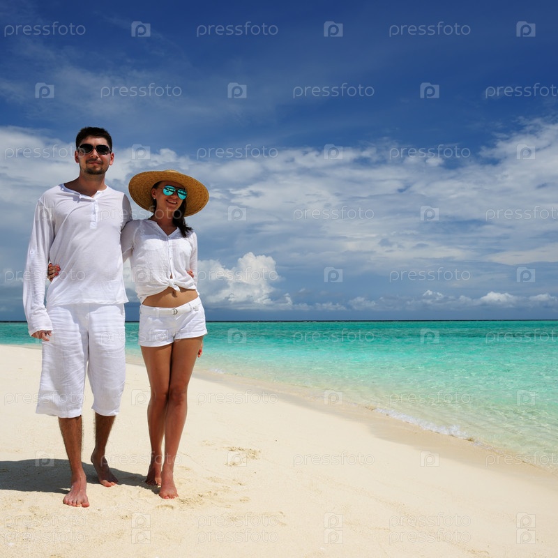 Пара на пляже в Мальдивах
