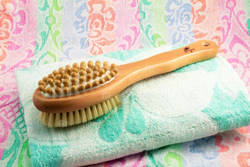 Щетка с ручкой для массажа тела и полотенце