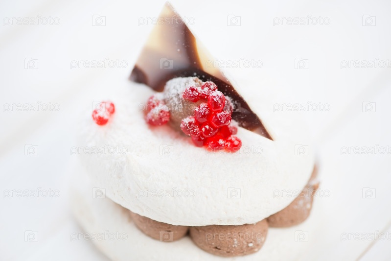 Пирожное на деревянных досках, крупный план