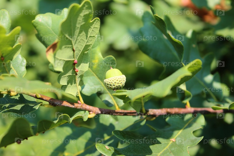 Молодой зеленый желудь крупным планом