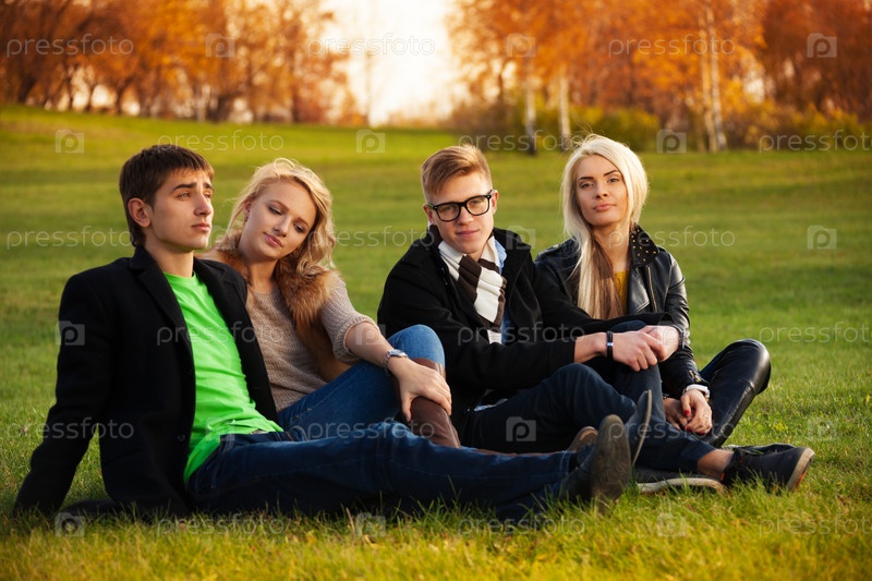 Четверо студентов сидят на газоне