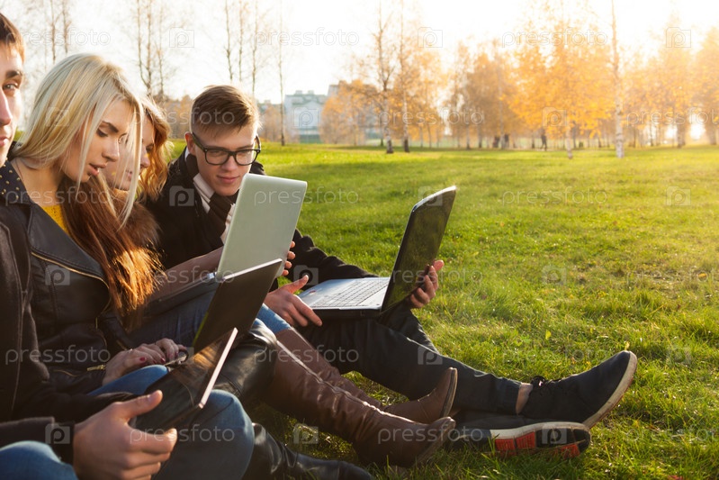 Занятая компания в парке при колледже