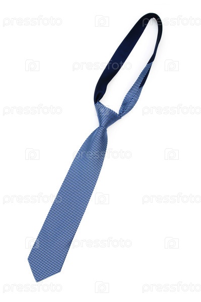 Голубой шелковый галстук на белом фоне
