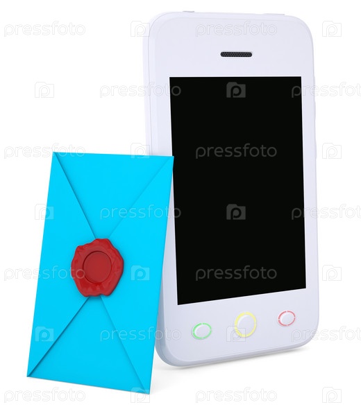 Голубой конверт и смартфон