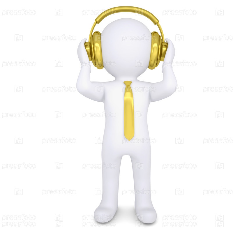 3D белый человек с золотыми наушниками
