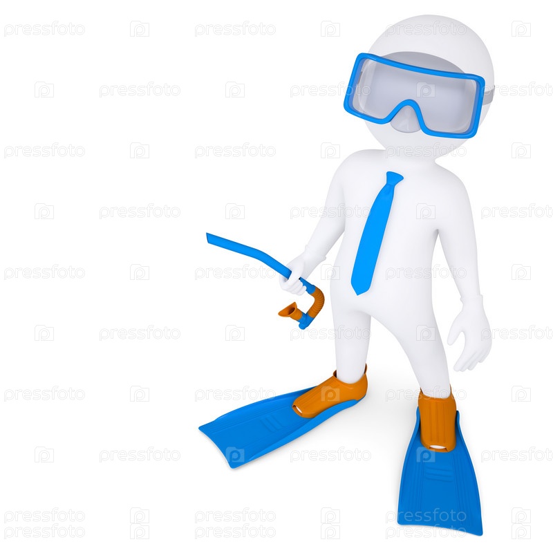 3D-человек с лапами и маской под водой